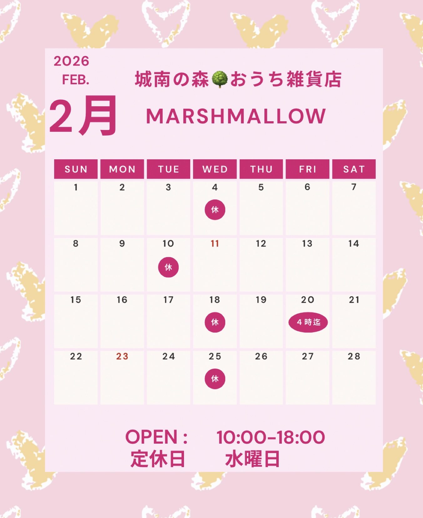 2月の営業予定