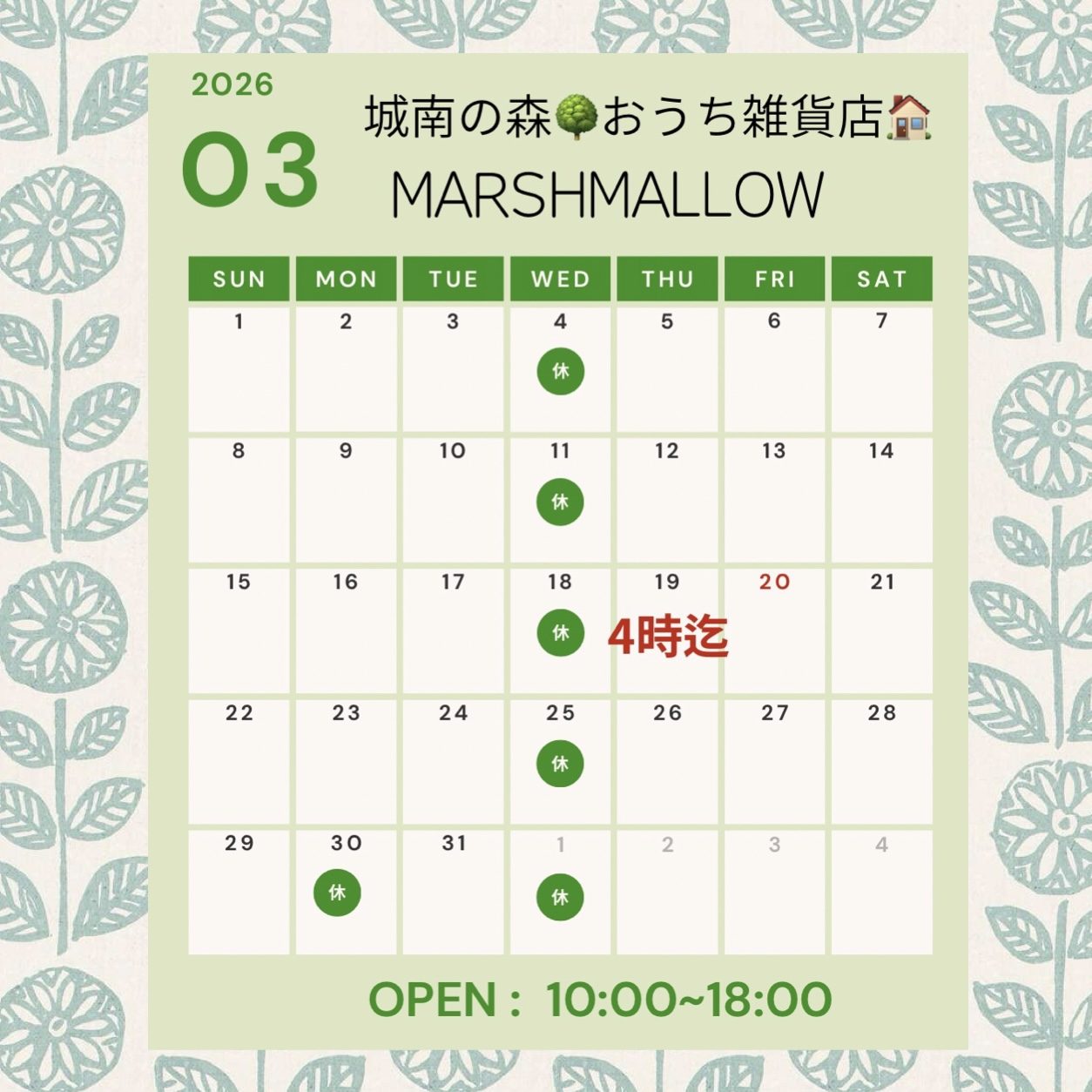 3月営業予定